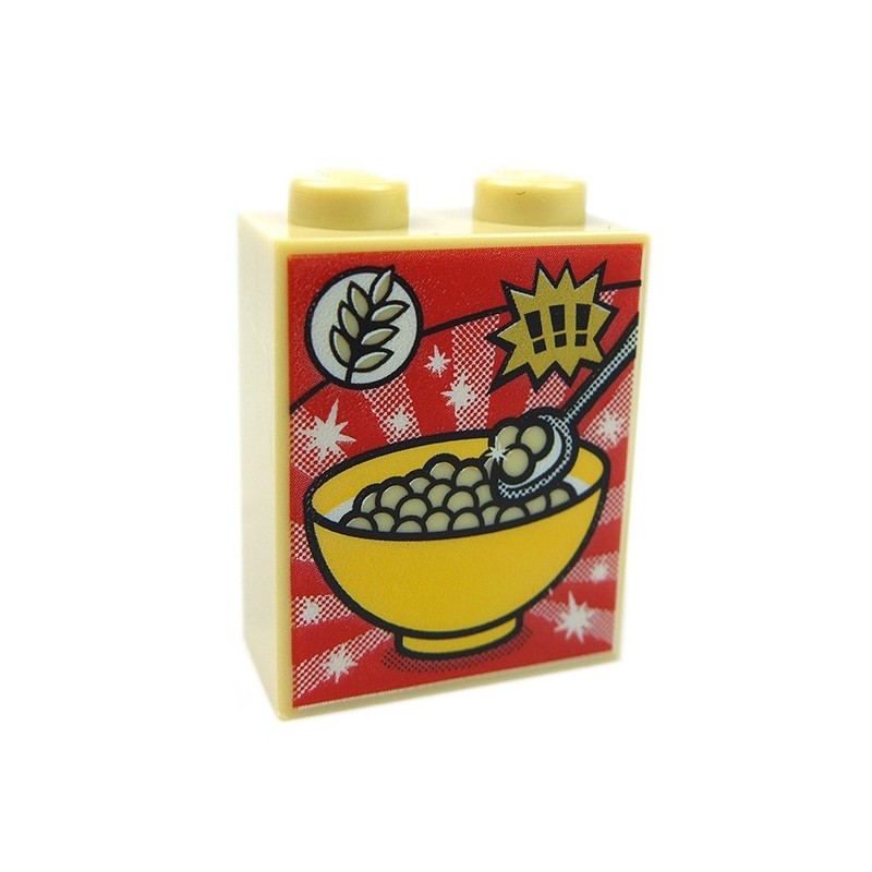 Tan Brick 1 x 2 x 2 Cereal Bowl, Wheat & Exclamation Marks Cereal Box